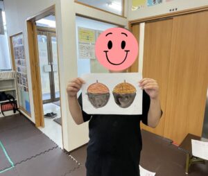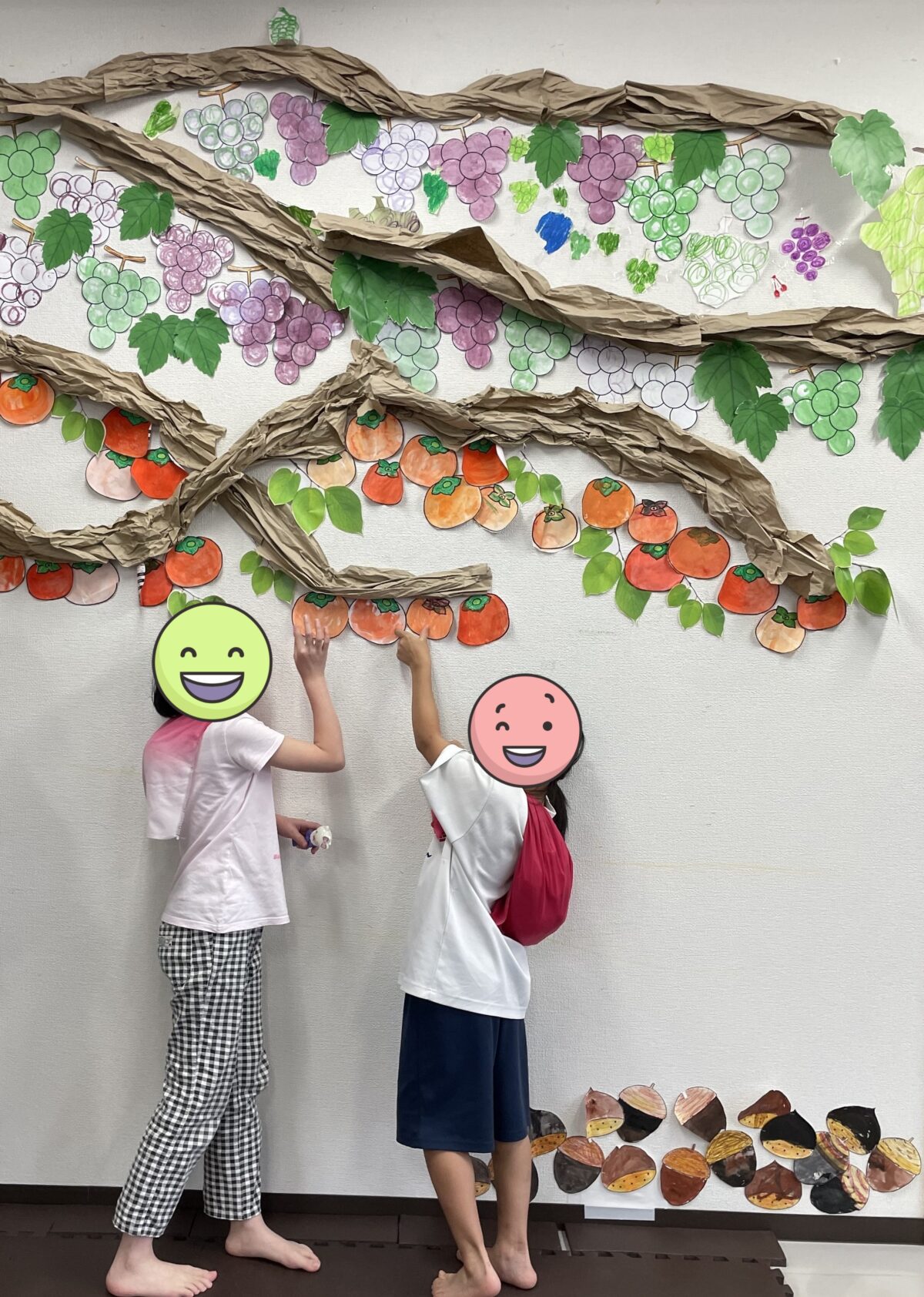 完成した絵は壁面に飾り、すっかり秋らしい壁面になりました(^^♪