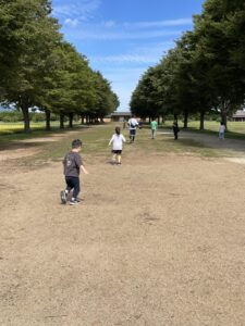 女の子たちはお花を摘みながらおしゃべりが楽しそう!男の子たちは、元気いっぱいに走り出します!