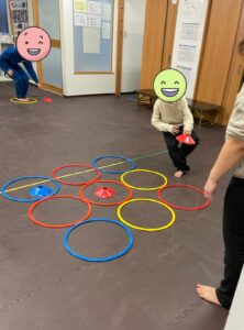 最初は、みんなルールが難しく質問したり、考えながらやったりしていましたが、何回かやるうちにルールを理解し楽しそうに行っていました。終わるころには、もっとやりたかった!など言ってくれました。